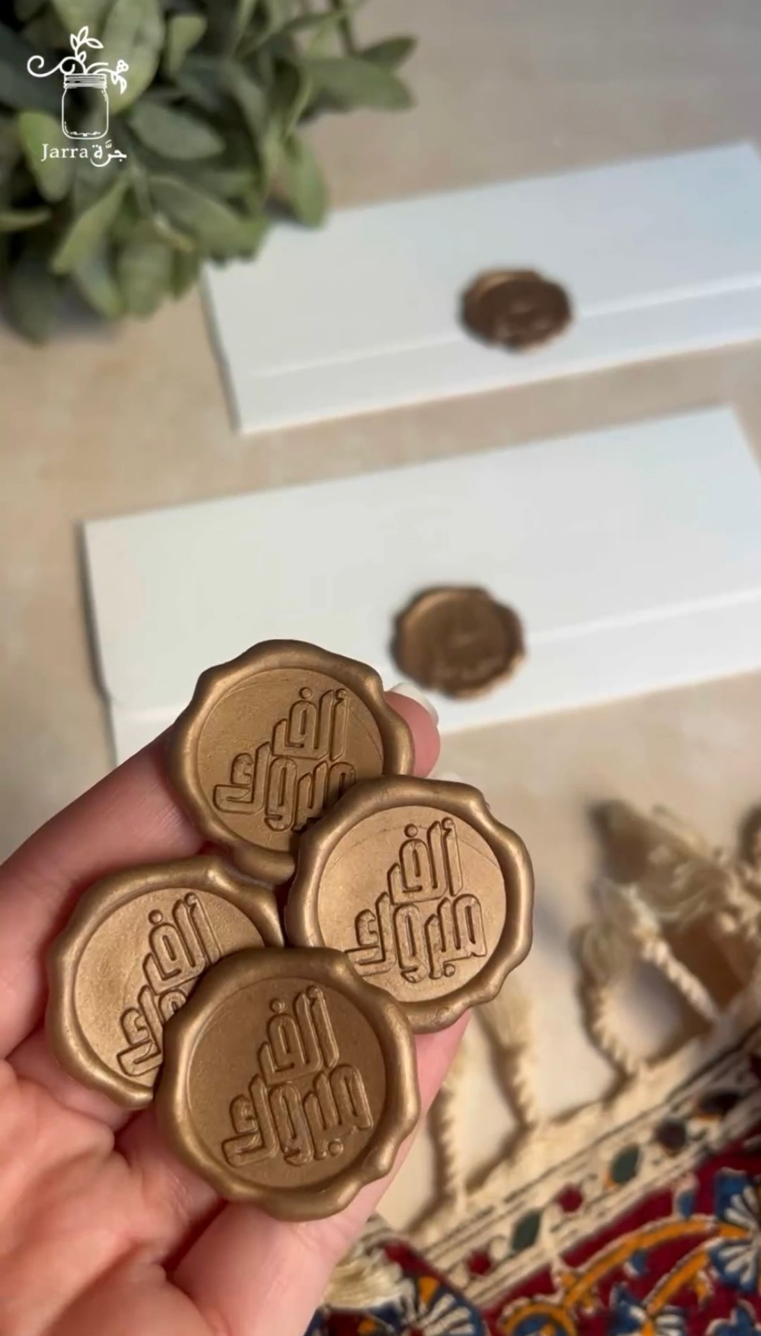 Off-White Envelopes With Gold Stamp (pack of 6) Dimensions: Length = 18 cm, Width = 8 cm